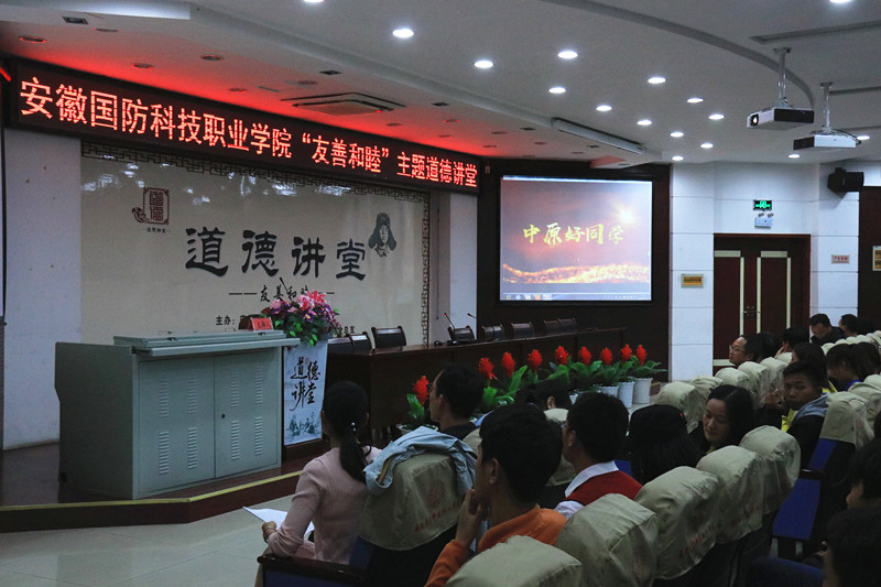 为深入学习贯彻习近平新时代中国特色社会主义思想和党的十九大精神,积极培育和践行社会主义核心价值观,引导师生崇德向善、知礼尚义,自觉成为道德风尚的传播者、实践者,10月24日下午,由校党委宣传部主办、信息技术学院承办的以“友善和睦”为主题的道德讲堂活动在校图书馆报告厅隆重举行,活动特邀安徽大学裴德海教授作主题讲座。校党委书记余嗣元,校党委副书记、纪委书记朱德明,副校长冯伦久,校党委委员袁旗等校领导应邀出席,全校200余名师生代表参加了此次活动。活动由信息技术学院党总支副书记杨庆颖主持。