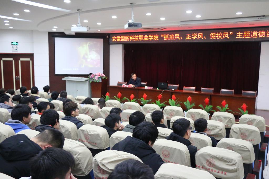 为深入学习贯彻全国教育大会精神特别是习近平总书记关于教育的重要论述精神,加强学校学风校风建设,12月26日下午,由校党委宣传部主办,汽车技术学院党总支承办的“抓班风、正学风、促校风”主题道德讲堂在图书馆报告厅隆重举行。讲堂特邀皖西学院教授傅敏老师做主题报告,校长李麟书、中层干部、思政课教师及各二级学院师生代表共200余人参加了此次活动,活动由汽车技术学院党总支副书记余桂刚主持。