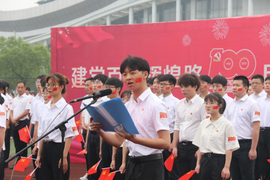 举行升旗仪式和重温入党誓词活动。7月1日上午7 时许,学校体育场党旗、国旗飘扬,迎着夏日热烈的朝阳,学校全体党委委员、教师代表、2021年新发展师生党员和广大学生代表等齐聚体育场,参加庄严的升旗仪式,重温入党誓词,回顾成为一名中国共产党员的光荣和使命。仪式在全体师生高唱慷慨激昂的《没有共产党就没有新中国》的歌声中拉开帷幕。