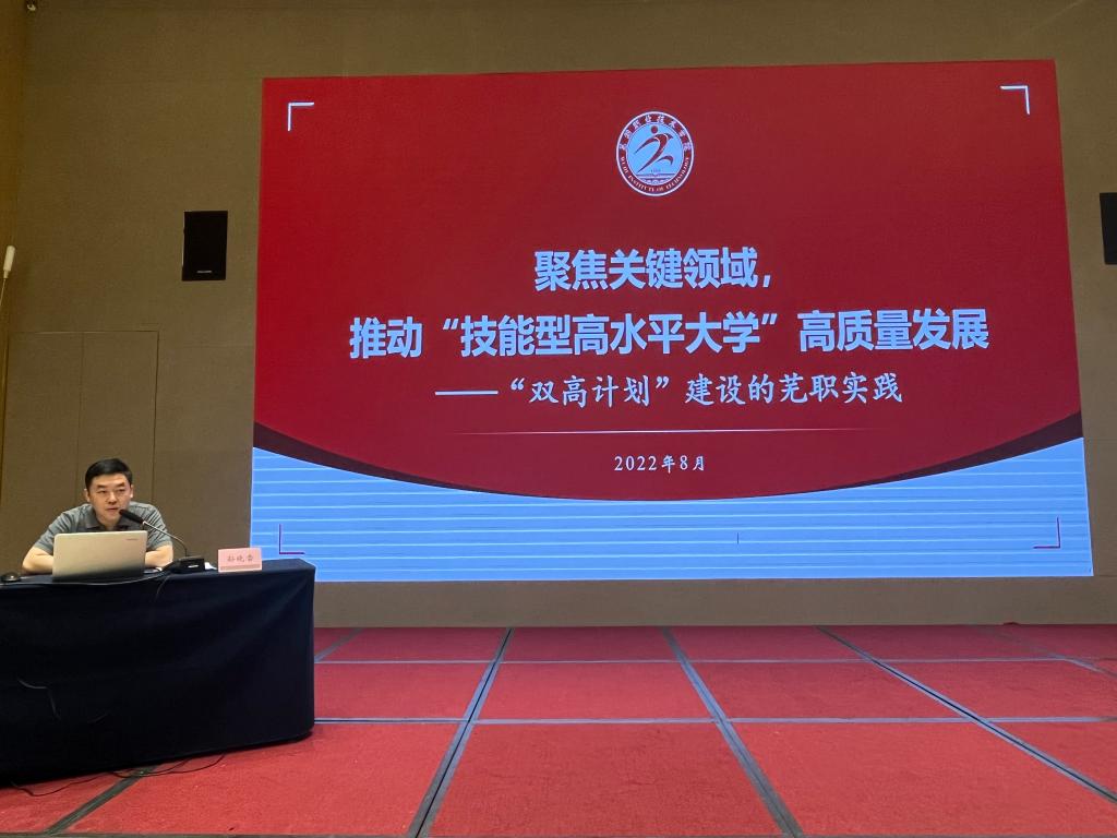 芜湖职业技术学院党委委员、副校长孙晓雷教授作《聚焦关键领域,推动“技能型高水平大学”高质量发展》专题报告,从职业教育的发展背景分析,指出职业教育变革势在必行,职业教育前途广阔、大有可为、大有作为,同时提出要从10个关键领域精准发力,推动技能型地方高水平大学高质量发展。报告指导性和针对性强,为学校高水平大学建设提供了很好的建议和指导。