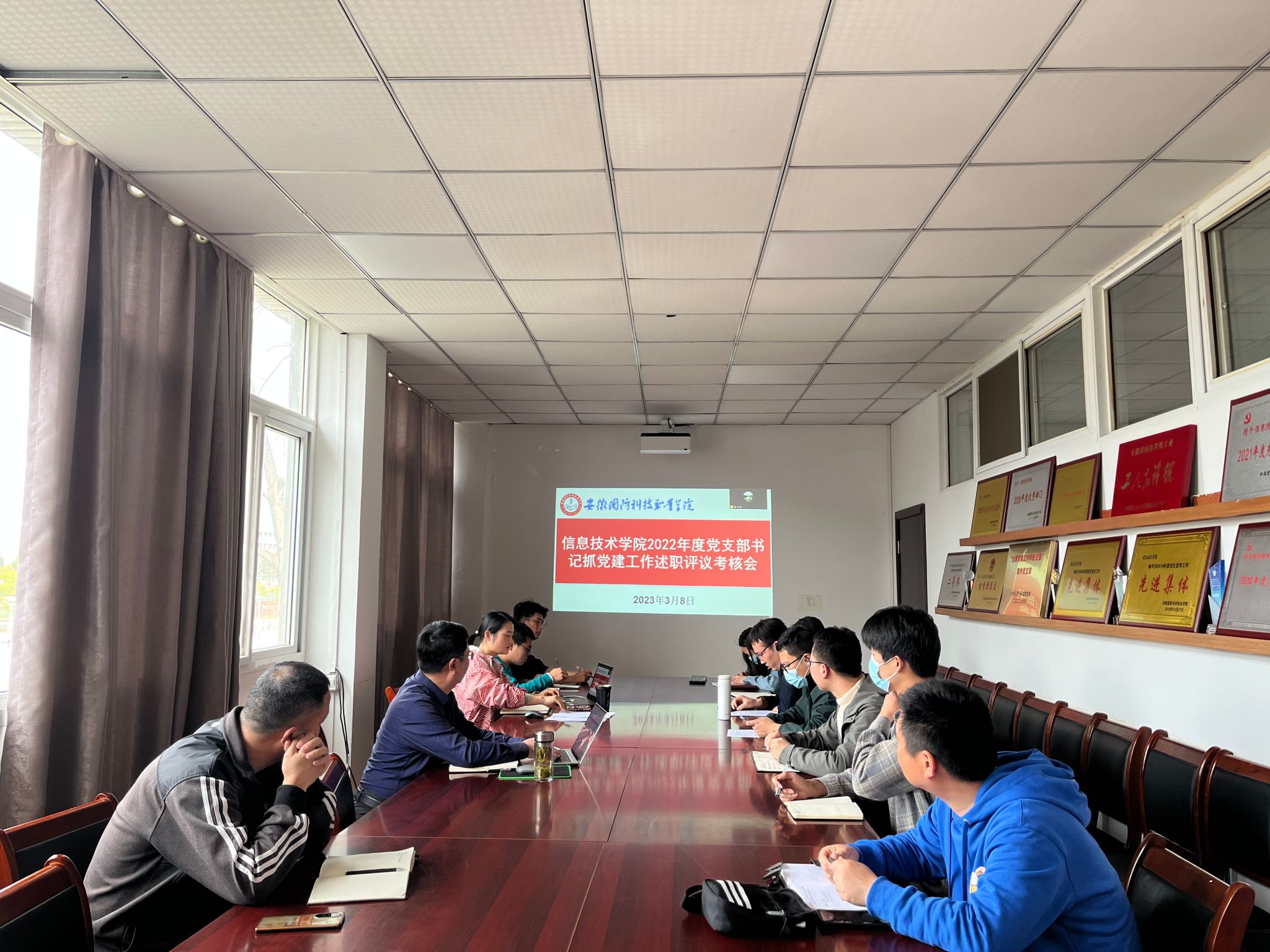 本网讯(信息技术学院 薛蕊)为扎实做好新学期党建工作,进一步提升工作效能。3月8日下午,信息技术学院于知行楼304会议室召开了支部书记抓党建工作述职评议考核会。会议由学院党总支书记王胜主持,各支部书记和党员代表参加。
