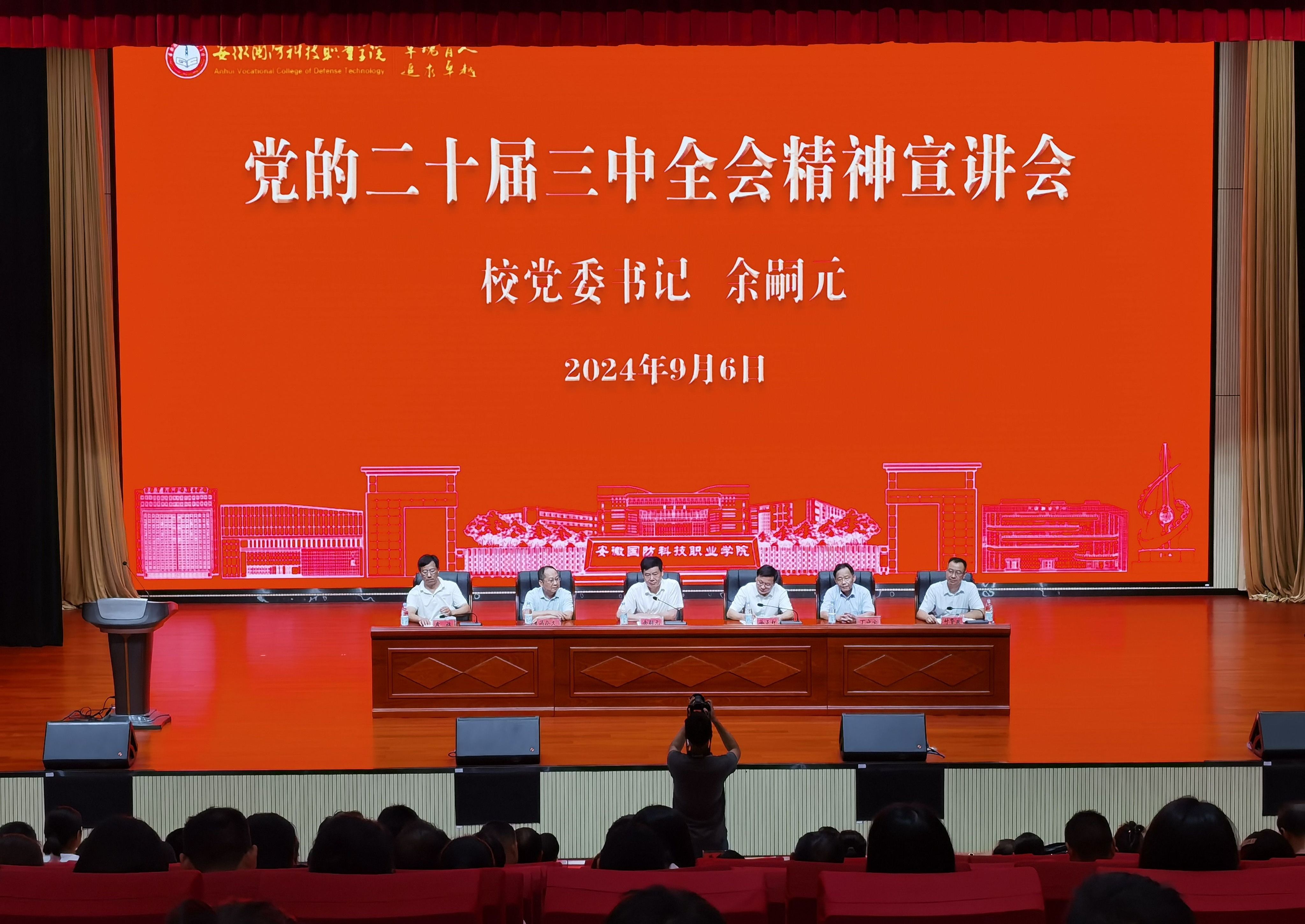 本网讯 为深入学习宣传贯彻党的二十届三中全会精神,凝聚思想共识,汲取奋进力量。9月6日下午,学校在产教融合中心A区多功能厅举行党的二十届三中全会精神专题宣讲报告会。校党委书记余嗣元出席报告会并为师生作专题宣讲。校领导徐正红、冯伦久、丁守宝、袁旗、付贤政以及各职能部门和二级学院负责人、党员职工代表等450余人参加报告会。会议由党委委员、副校长付贤政主持。