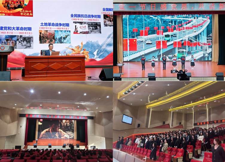 活动邀请了六安市委党史宣讲团副团长、安徽省委讲师团专家库成员陈道明主讲《新时代日新月异——庆祝中华人民共和国成立75周年》,他带领师生回顾了中国共产党的百年历程,并重点从新中国取得的举世瞩目成就、中国共产党人的精神谱系以及大学生要为强国建设而读书等三个方面做了详实而生动的解读。随后,学生代表朗诵了《祖国是什么》,全体师生诵读了李大钊的《青春》选段并观看短片《75年,我们正年轻》。在青春寄语阶段,雷惊鹏激励广大学生以青春的意志、青春的热血在新征程上奋力前行。最后,活动在全体师生同唱歌曲《歌唱祖国》圆满结束。