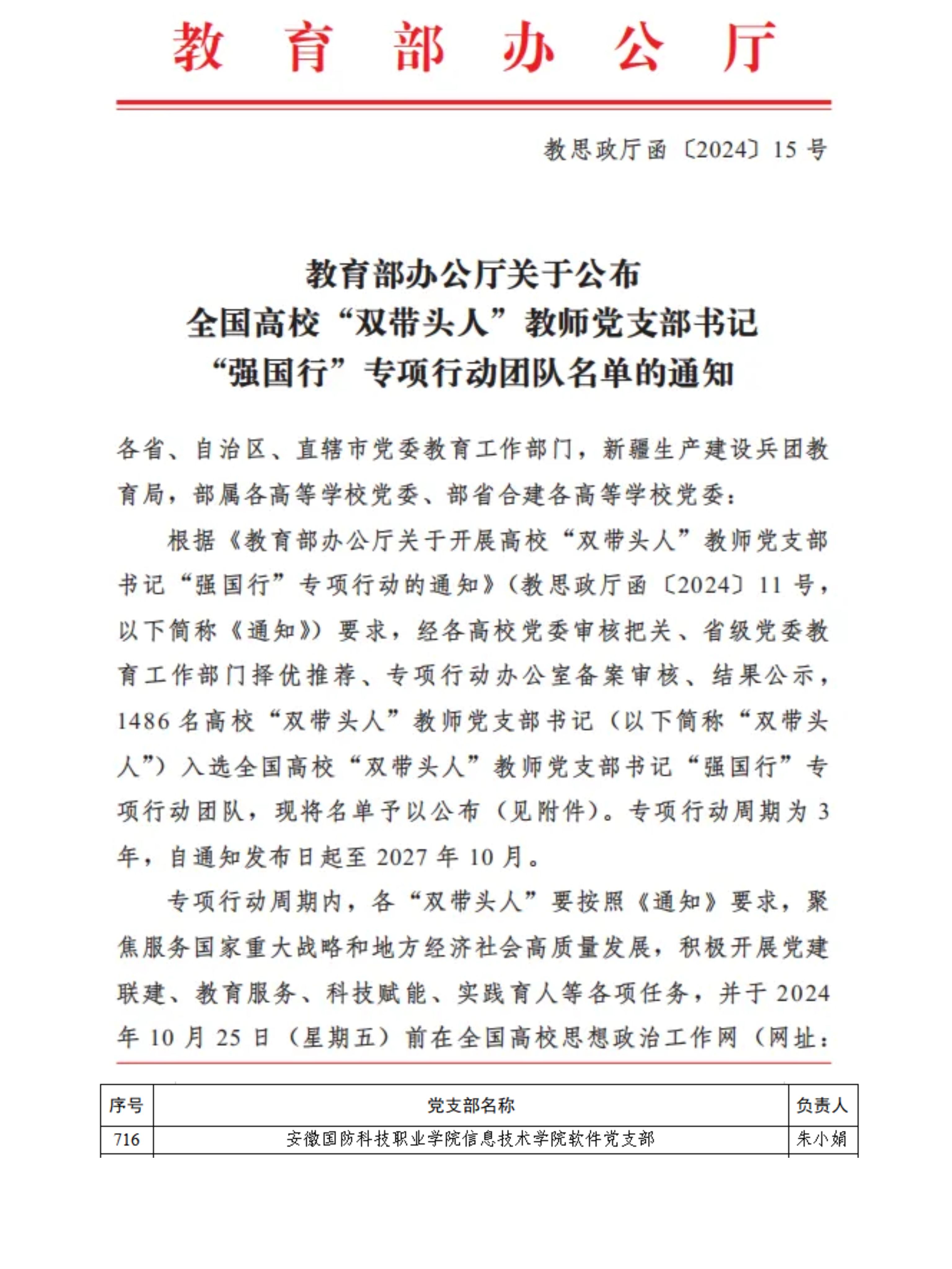 本网讯(组织人事处 樊新丽)近日,教育部办公厅公布全国高校“双带头人”教师党支部书记“强国行”专项行动团队名单,万象城官网信息技术学院软件党支部成功入选。
