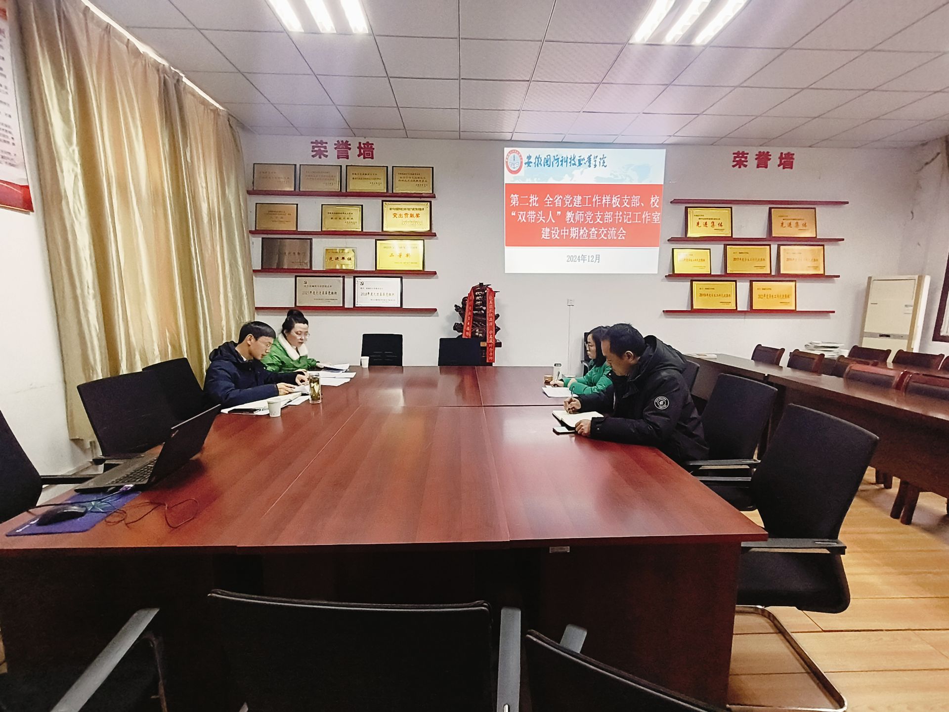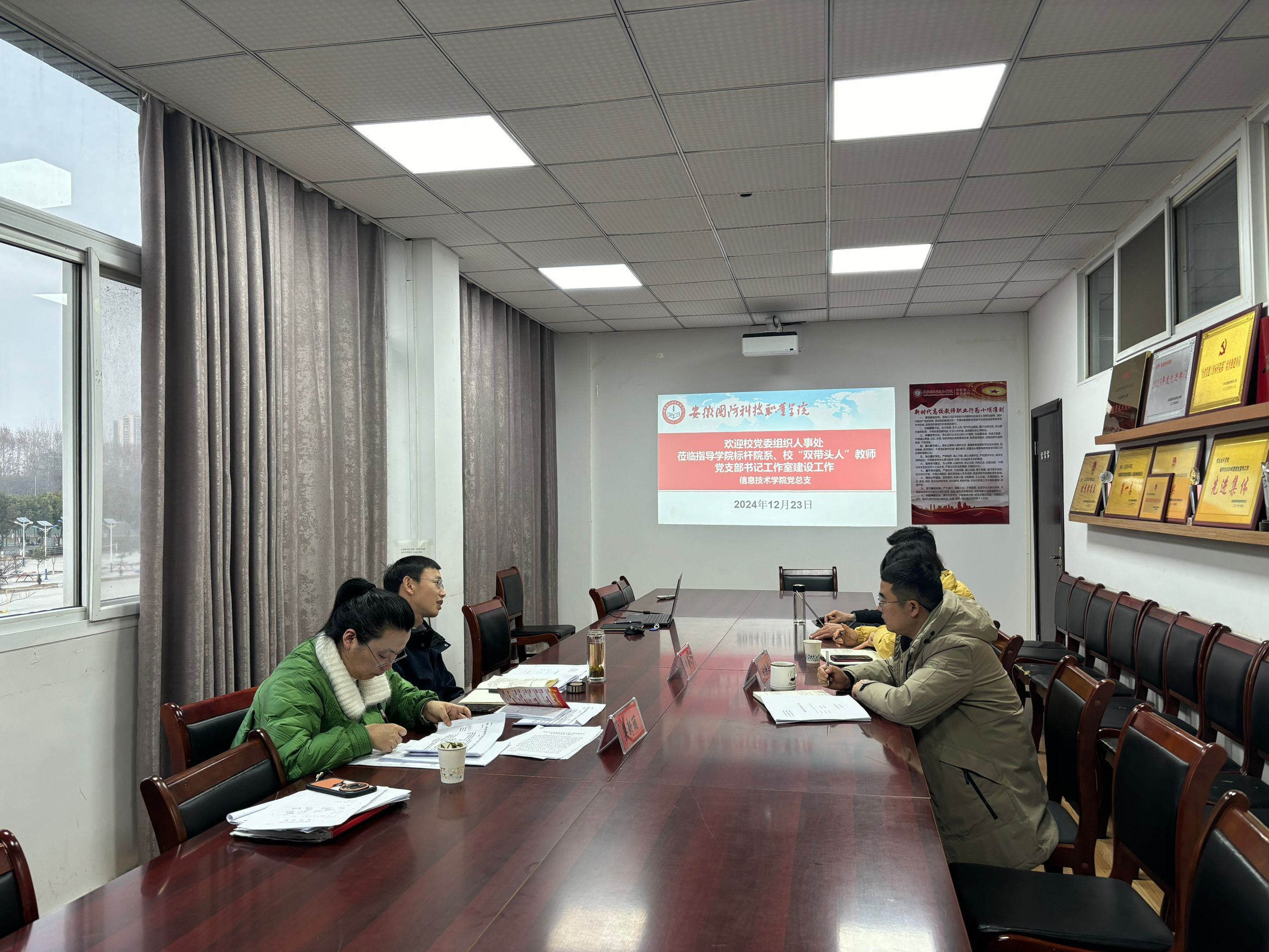 在调研现场,安徽省第二批党建“双创”工作标杆院系信息技术学院党总支、样板党支部机械技术学院智能制造党支部、入选全国全省高校“双带头人”教师党支部书记“强国行”专项行动团队的软件党支部、智能制造党支部、校“双带头人”教师党支部书记朱小娟工作室、王丽工作室、杨力工作室、王红林工作室、龚灯工作室等培育创建单位负责人紧紧围绕项目开展的重点举措、建设计划完成情况、创建成果、特色亮点、下一步工作计划、存在的困难等方面进行了详细的汇报,组织人事处副处长(主持工作)杨志清认真听取了培育创建工作汇报,并与相关人员深入交流,针对下一步重点任务及如何更好地发挥基层党支部战斗堡垒作用和党员先锋模范作用,给出了具体指导意见,并在凝练经验特色、宣传带动等方面提出了具体要求。