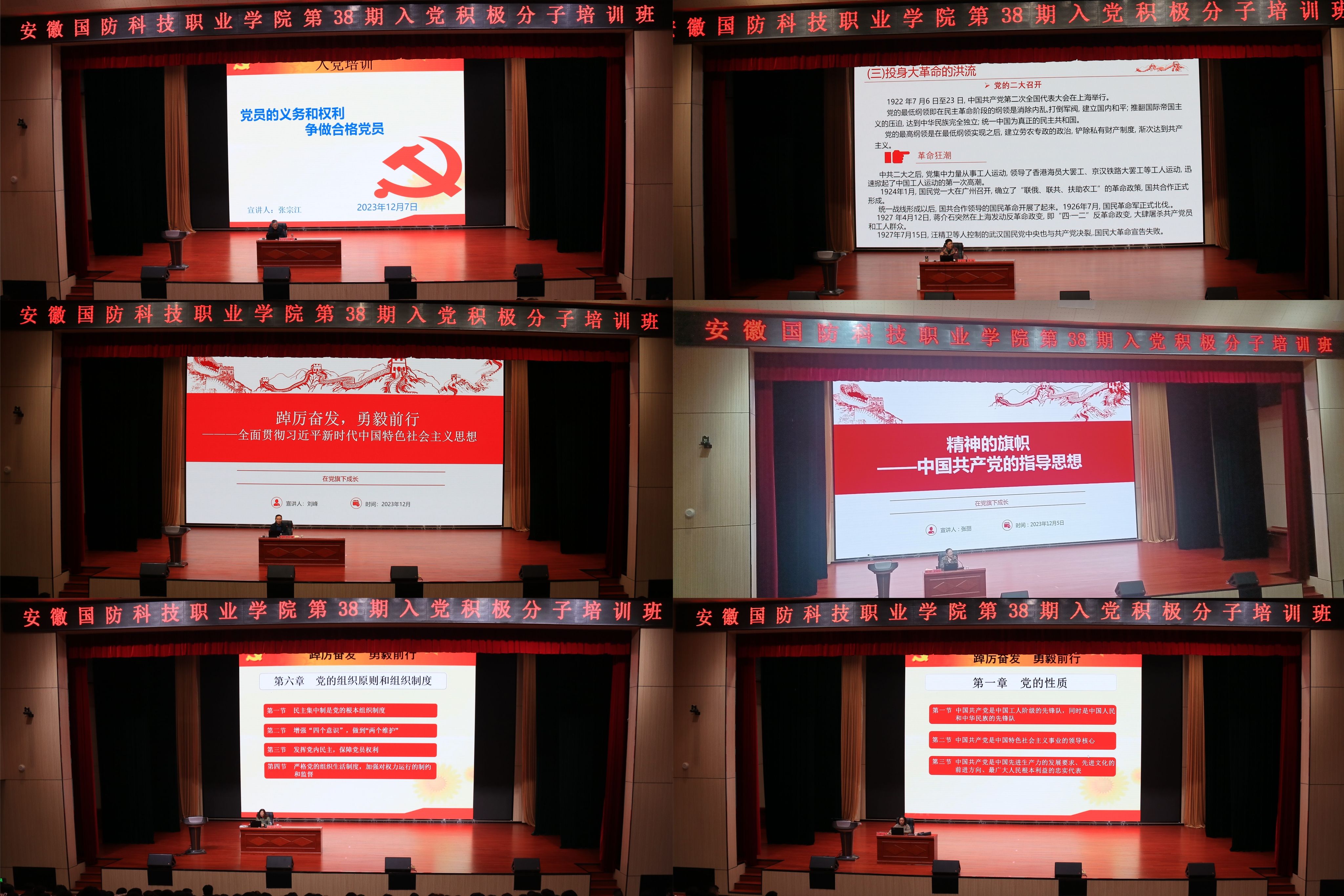 在为期六天的培训中,城市建设学院党总支书记张宗江、信息技术学院党总支书记王胜、经贸管理学院党总支书记刘峰、电气技术学院党总支副书记张丽、教务处科研科长刘严、机械技术学院组织员项华等教师,围绕学习贯彻习近平新时代中国特色社会主义思想、党的二十大精神、中国共产党章程、党的性质、党的纪律、党的历史和理想信念教育等内容为培训班学员讲授专题党课,引导入党积极分子端正入党动机,坚定共产主义信仰,强化思想入党。
