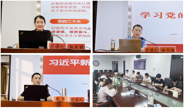 学校纪委副书记、纪委办公室(监察审计处)主任杨庆颖以深入贯彻中央八项规定精神学习教育为题,从重温“中央八项规定”内容、违反中央八项规定精神主要表现以及相关党纪条规,阐释了八项规定如何改变中国并开启了作风建设的新篇章。组织人事处副处长杨志清以《学习党的章程 增强党章意识》为题,从党章地位和作用、历史和沿革、结构和内容三个方面,系统解读了党章的重点内容,并向学员强调了遵守党章、尊崇党章、维护党章的重要意义和具体要求。马克思主义学院副院长聂勇围绕习近平新时代中国特色社会主义思想产生的时代背景、科学体系和时代要求三个方面,深入解读了习近平总书记关于中国式现代化道路的重要论述。