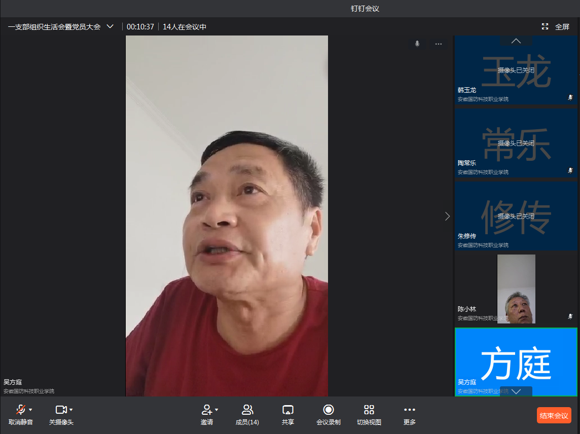 731日下午,直属一支部组织召开党史学习教育专题组织生活会,会议由支部书记吴方庭主持,全体党员在线参加会议,校党委委员、党政办主任李存鹏以普通党员身份参加了会议。