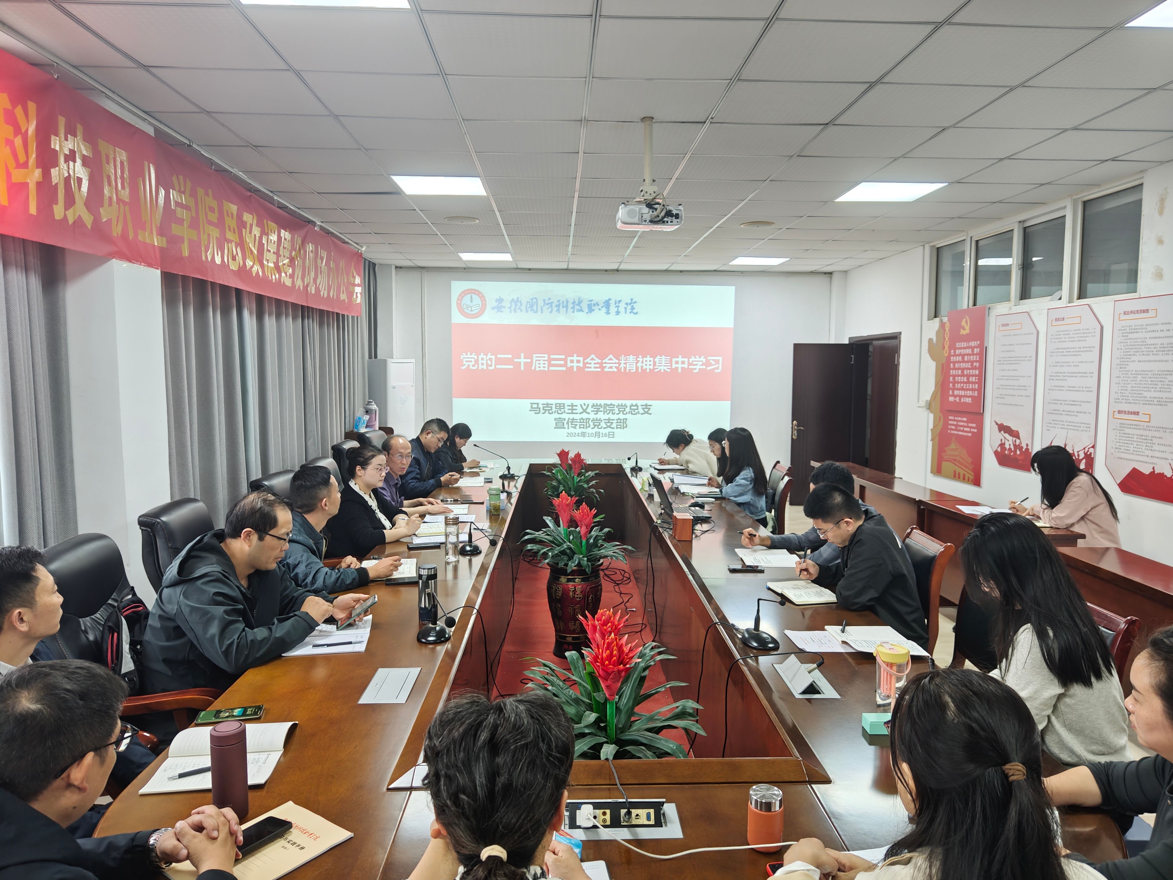 本网讯(宣传部 李浩)为进一步加强党的创新理论武装,不断提升职工党员以改革创新精神主动谋划发展、推动工作的意识,10月16日下午,马克思主义学院党总支与宣传部党支部联合在知行楼403会议室召开集体学习会,专题学习贯彻党的二十届三中全会精神和全国教育大会精神。校党委委员、宣传部部长、马克思主义学院院长陈思、马克思主义学院党总支书记黄祥出席会议,马克思主义学院党总支和宣传部党支部全体党员按时参加学习会。