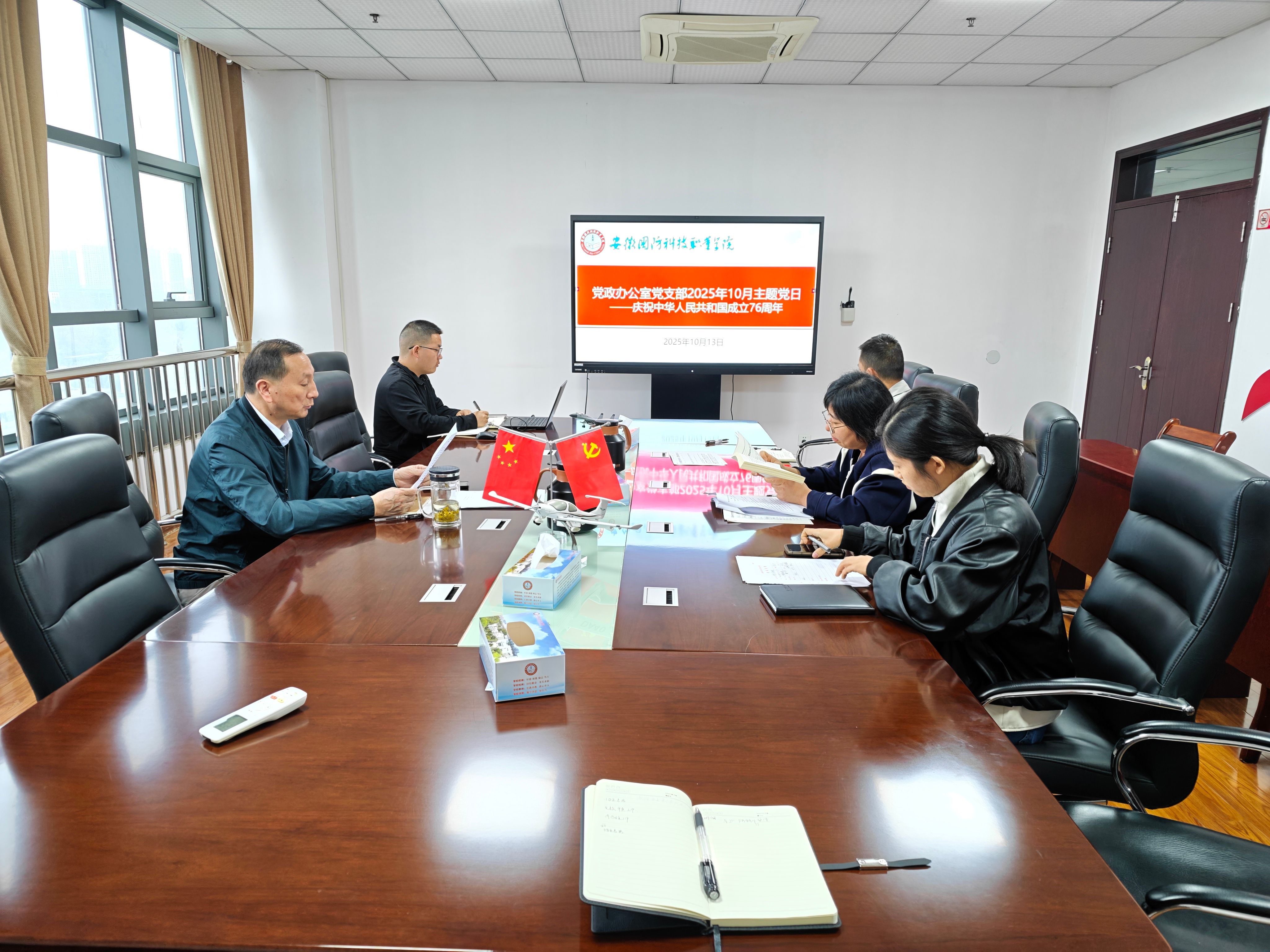 10月13日,党政办公室党支部举办庆祝中华人民共和国成立76周年主题党日活动。本次活动由支部书记李大武主持,全体党员参与。全体党员认真学习了习近平总书记在庆祝新中国成立76周年招待会上的重要讲话精神,以及《论中国共产党历史》中“始终做到初心如磐、使命在肩”重要篇章,并集体观看了《吾家吾国》陆元九先生事迹纪录片。