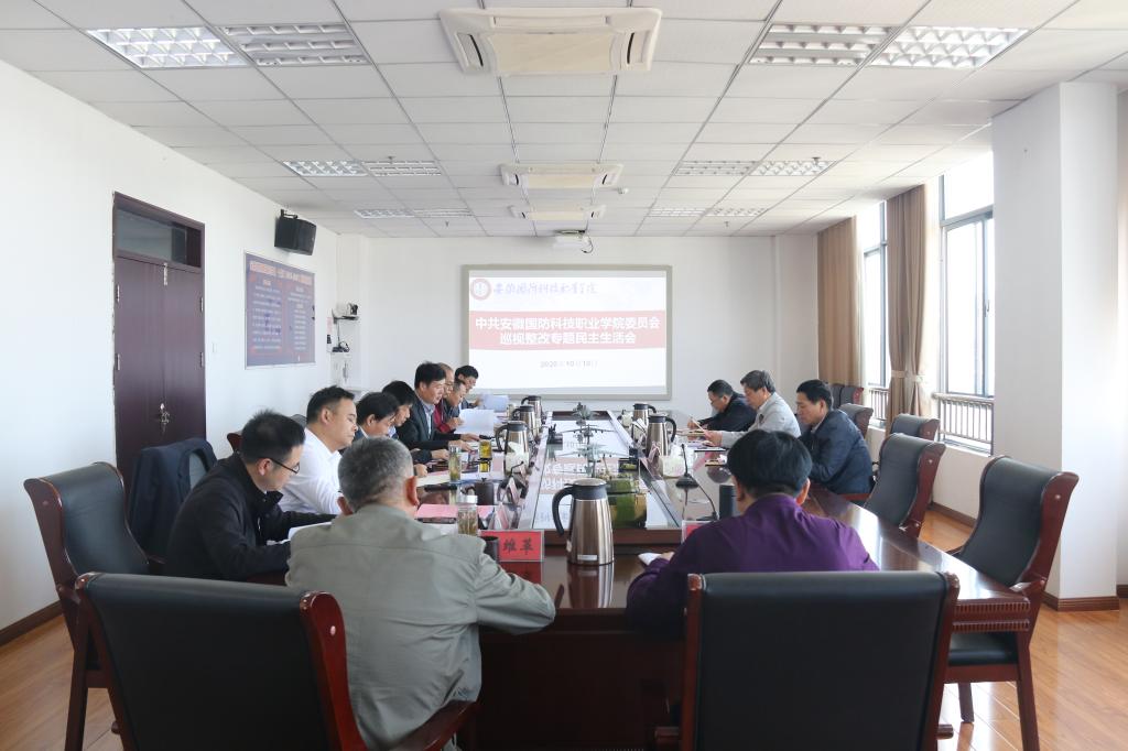 为认真抓好省委巡视高职高专第十七组对万象城官网巡视反馈意见整改落实,10月10日,学校党委班子召开了巡视整改专题民主生活会。会议以习近平新时代中国特色社会主义思想、党的十九大和十九届二中、三中、四中全会精神为指导,结合习近平总书记关于巡视工作系列重要讲话精神和考察安徽重要讲话精神,对照省委巡视高职高专第十七组反馈的问题,紧扣实际,深入剖析,以高度的政治自觉和责任担当加强班子自身建设,确保巡视反馈意见整改落实到位。会议由党委书记余嗣元主持,全体党委委员参会,省委军民融合办副主任吴端阳、综合处处长杨道米、机关党委专职副书记陈权到会全程指导。