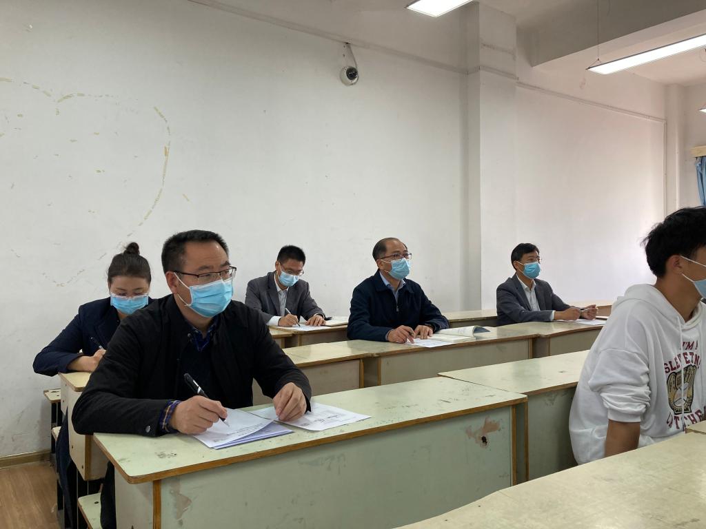 召开思政课建设现场办公会前,校领导们分两组走进2教307和1教312教室,分别听取了马克思主义学院刘云、刘严两位教师的现场思政课教学,对思政课课堂教学情况进行实地考察和了解。课堂上,校领导一边认真聆听,一边对听课情况进行详细记录,密切关注着课堂教学内容、课堂组织、师生互动及教育技术运用等情况。