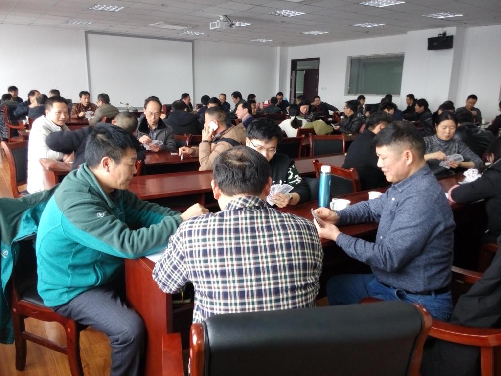 为丰富广大教职工的业余文化生活,愉悦身心健康,加强了解,增进友谊,学校工会于2018年1月13日在综合楼九楼会议室举行了扑克牌掼蛋比赛。
