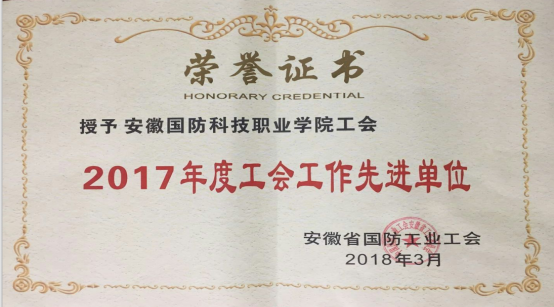 经过考核评比,校工会被省国防工业工会授予“2017年度工会工作先进单位”和“互助保障工作先进单位”的称号。