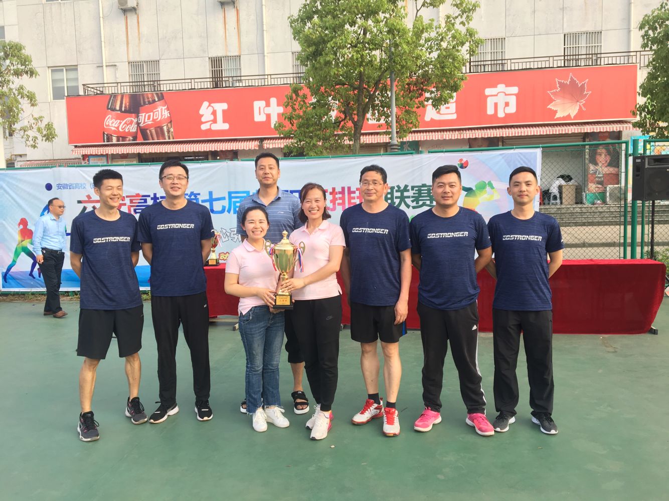 5月19日,六安市城区第七届高校教职工排球赛在皖西卫生职业技术学院举行。万象城官网党委副书记、纪检委书记、工会主席朱德明,校工会办主任王文堂带队并出席本次活动。来自城区的4所高校代表队共20多名运动员经过一天紧张激烈的比赛,最终万象城官网取得了第三名的好成绩。