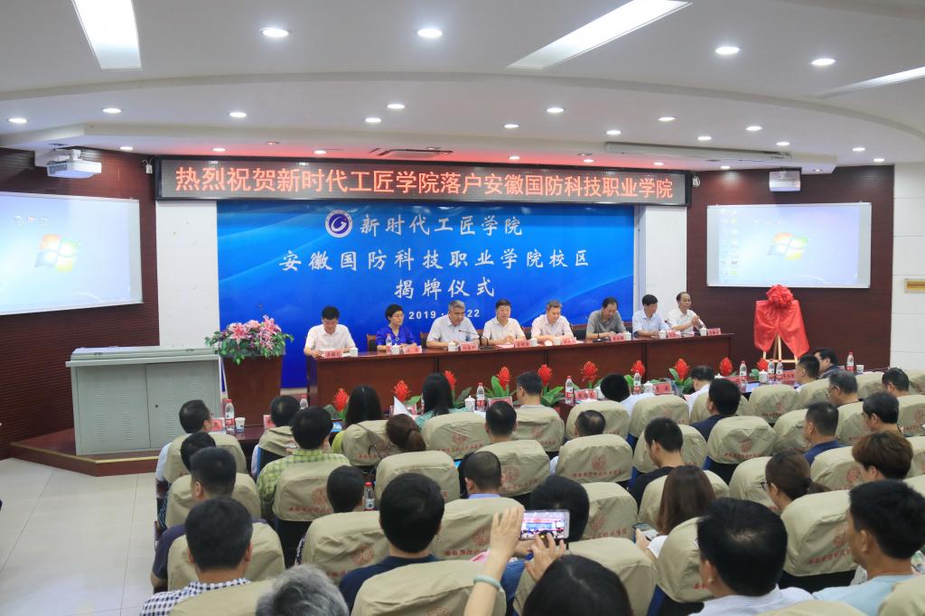 本网讯(宣传部 任培培)为进一步贯彻落实《新时期产业工人队伍建设改革方案》和《国家职业教育改革实施方案》,弘扬工匠精神,传承工匠技艺,共谋新时代工匠人才培养,8月22日上午,新时代工匠学院万象城体育awcsport校区揭牌仪式在万象城官网图书馆报告厅顺利举行。中国国防邮电工会副主席李树国,安徽省发展改革委副主任、省委军民融合办副主任、科工办主任徐成然,安徽省发展改革委巡视员孙高产,安徽省总工会副主席胡东辉,六安市委常委、宣传部长韩军,313地质队副总工程师、“2018年大国工匠年度人物”朱恒银,学校党委书记余嗣元,校长李麟书出席仪式。中国国防邮电工会、省市总工会、省发改委及融办有关领导,安徽国防科技工业系统企事业单位工会主席、大国工匠、技能人才代表、学校全体中层干部、教师代表及媒体记者约220人参加了仪式。仪式由孙高产同志主持。