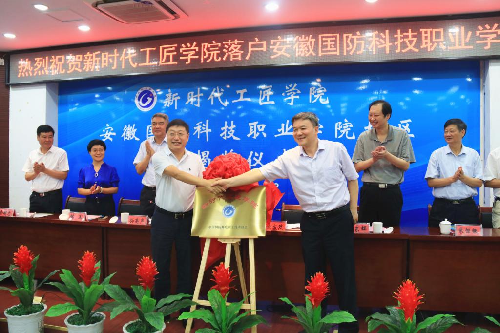 在一片热烈的掌声中,李树国同志和徐成然同志共同为新时代工匠学院揭牌。
