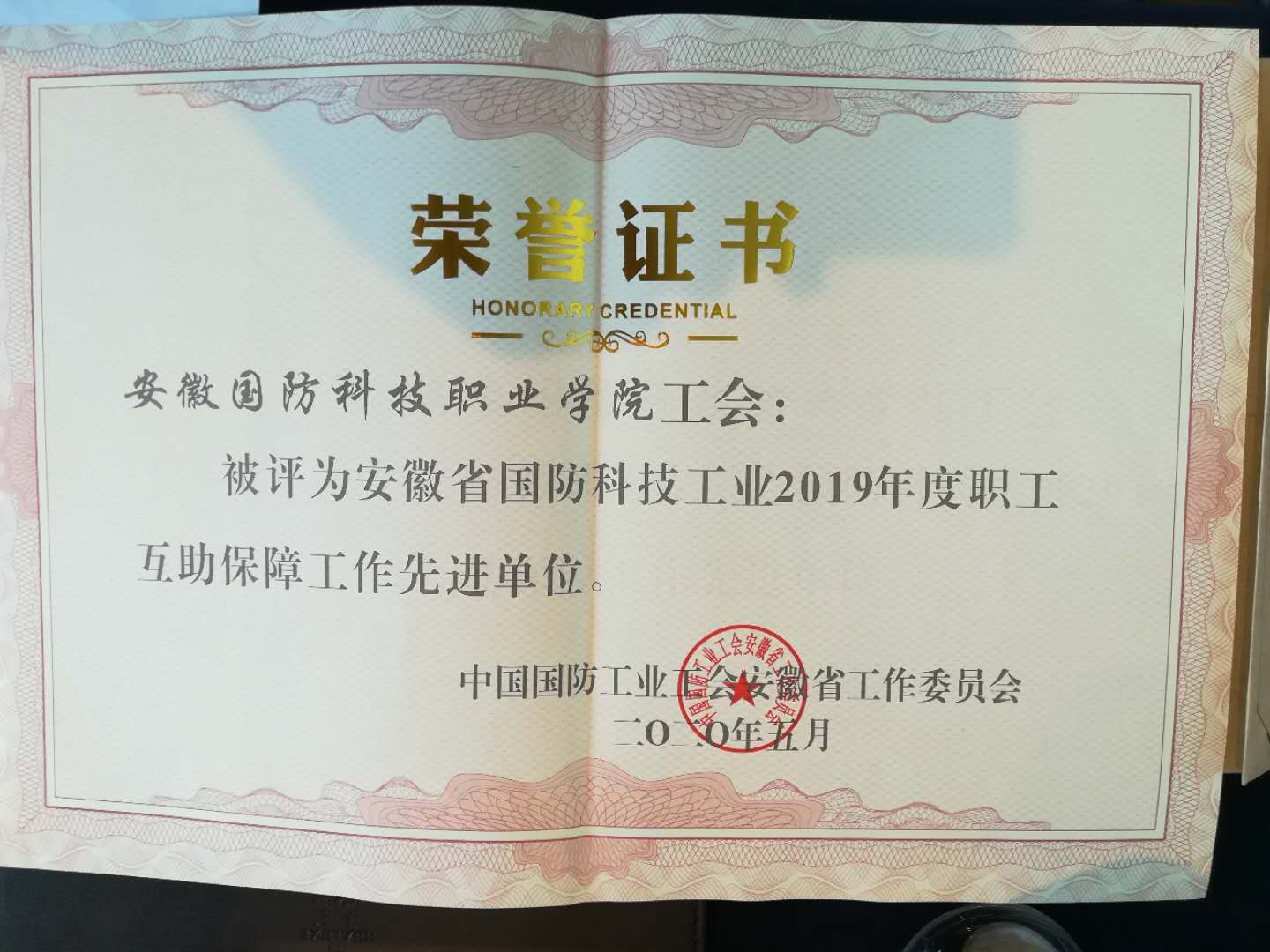 2019年校工会继续做好职工各种互助保障项目的续保工作。在学校的重视和支持下,校工会为在职职工重大疾病、在职女职工特殊疾病及职工意外伤害互助保障进行了续保,实现了全员参保,参保率达100%。另外我们加大了职工子女意外伤害险种的宣传力度,还为一部分职工子女参加了团体意外保险。及时为出险职工办理了理赔手续。由于工作扎实细致,日前校工会被中国国防工业工会安徽省工作委员会授予“安徽省国防科技工业2019年度职工互助保障工作先进单位”称号。