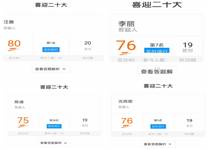 为深入学习习近平新时代中国特色社会主义思想,筑牢理想信念根基,推动党史学习教育,营造红色氛围,5月30日,经贸管理学院举办“喜迎二十大,薪火共传承”线上知识竞赛活动,学院全体教职工参与测试,以实际行动迎接党的二十大胜利召开。