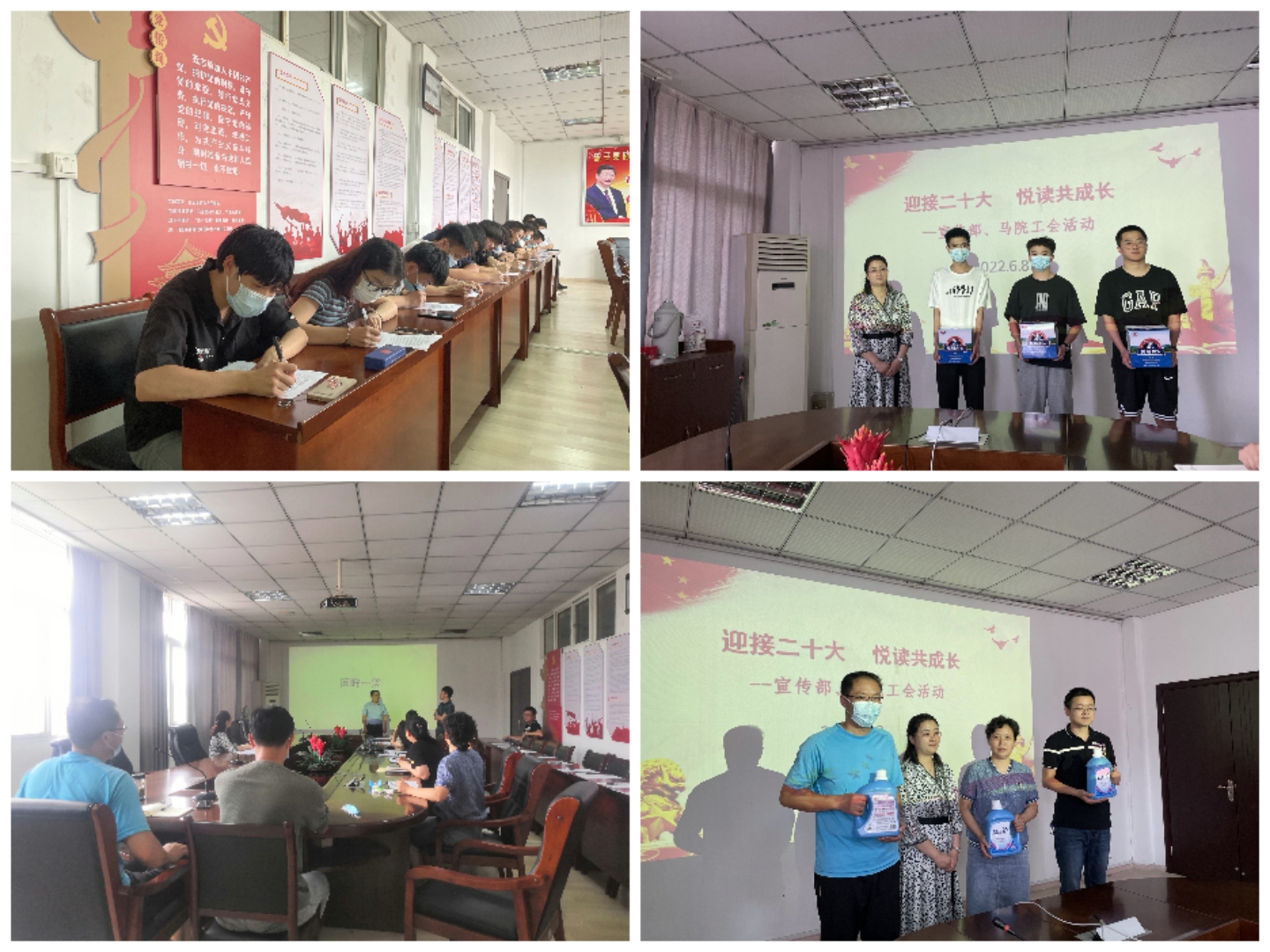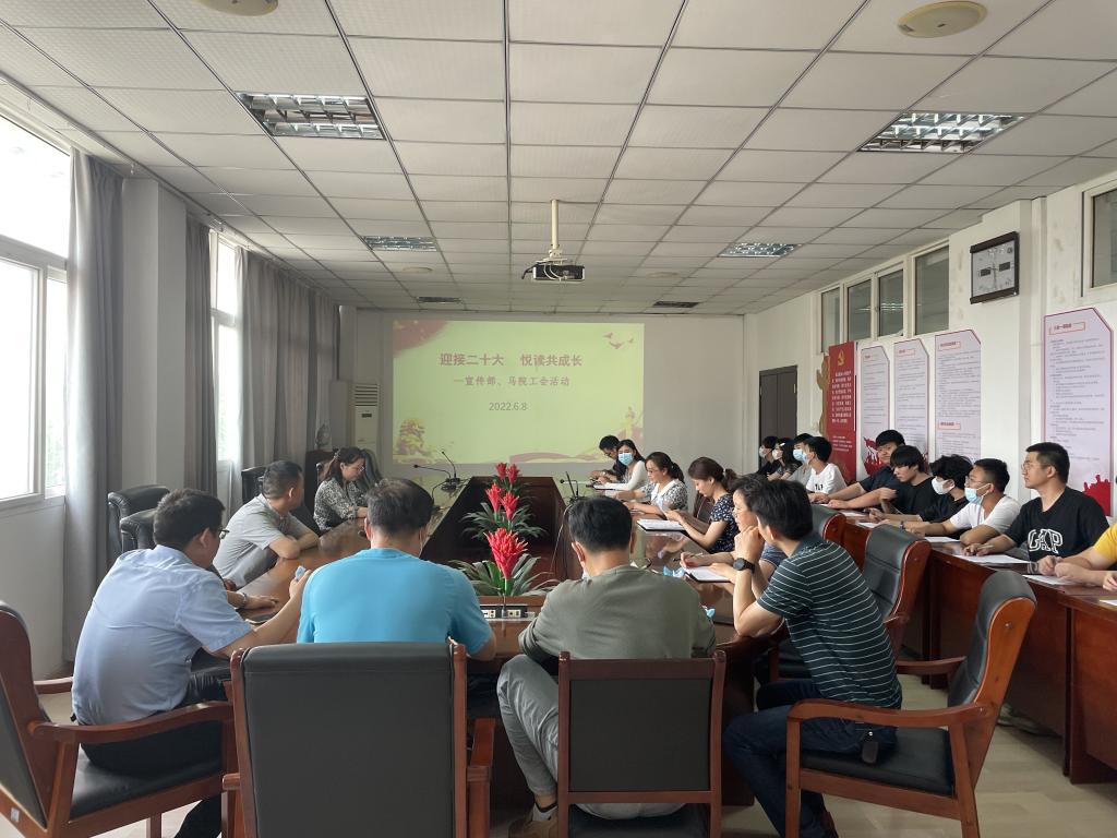 为了深入推进万象城官网思想政治工作,建立“大思政课”工作新格局,帮助师生了解党的奋斗历程和伟大成就,做到知史爱党,知史爱国,结合万象城官网“悦读伴我成长”主题学习,6月8日下午,直属二分会在知行楼403会议室举办以“迎接二十大 悦读共成长”为主题的工会活动。直属二支部全体工会成员、马克思主义学会学生代表参加了此次活动。活动由分会主席戴柳主持,校党委委员、宣传部部长、马克思主义学院院长陈思出席并指导。