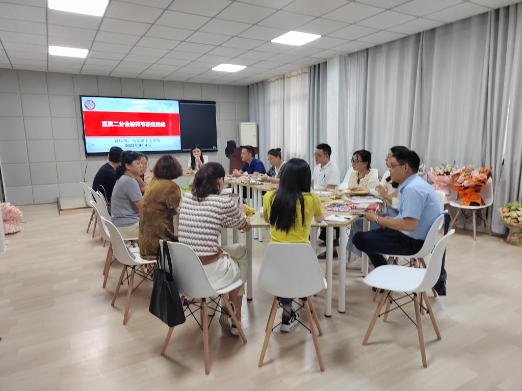 本网讯 (马克思主义学院 戴柳)为积极响应校工会关于开展教师节活动的号召,提升教师的职业认同感、责任感、幸福感,营造书香思政、温馨思政的浓厚氛围,2022年9月4日下午,直属二分会在知行楼403办公室召开教师节联谊会。
