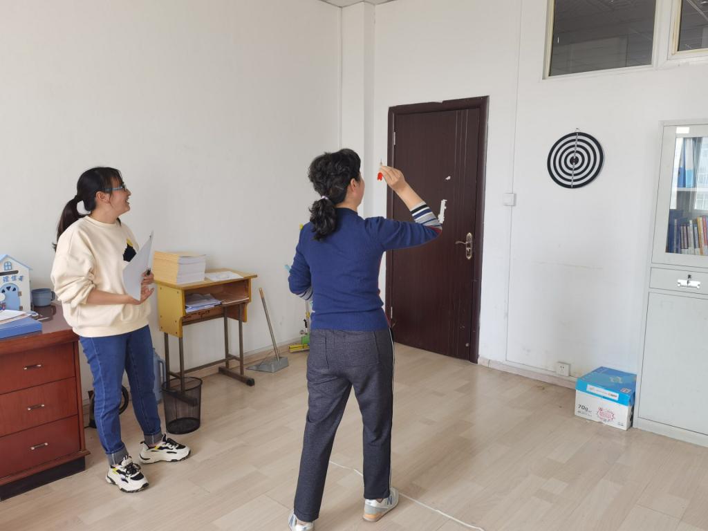 各位老师准时来到比赛现场,发挥自身优势和特长,积极参与到比赛中。一支支小小的飞镖,迅速地射向红色的靶心,比赛现场传来老师们的欢声笑语。经过激烈的比赛,聂勇、朱其阳夺得一等奖,费思佳等4位老师荣获二等奖,武晓璐等5位老师荣获三等奖。