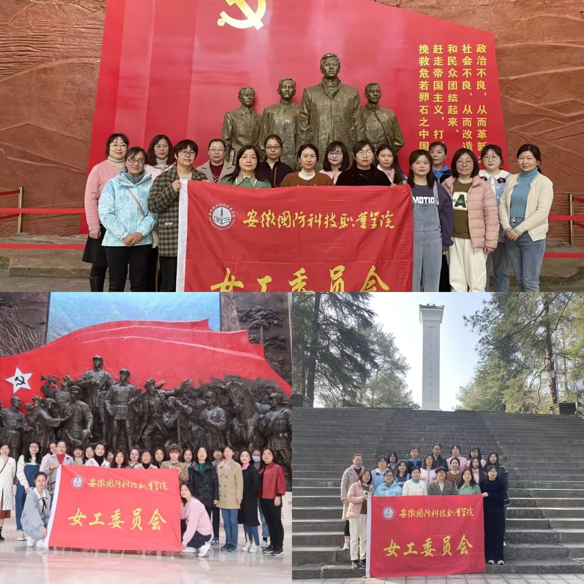 追寻红色印迹,不忘初心使命。行程万里,不忘来路;饮水思源,不忘初心。在校女工委员会的组织下,学校女职工分别参观了安庆红军中央独立第二师司令部旧址和六安大别山安徽红色区域中心纪念馆。红二师司令部旧址是省级重点文物保护单位,整座建筑为清代宗祠。红色中心纪念馆则全面展示霍山作为安徽省红色区域中心,从萌芽到形成和建设的发展过程,展示从大革命到解放战争时期各个历史阶段。回望党史源头,汲取优良养分;面向未来发展,更思肩上重任。通过此次参观学习,女教职工们追寻了红色先辈的历史足迹,锤炼了党性,提升了素养。