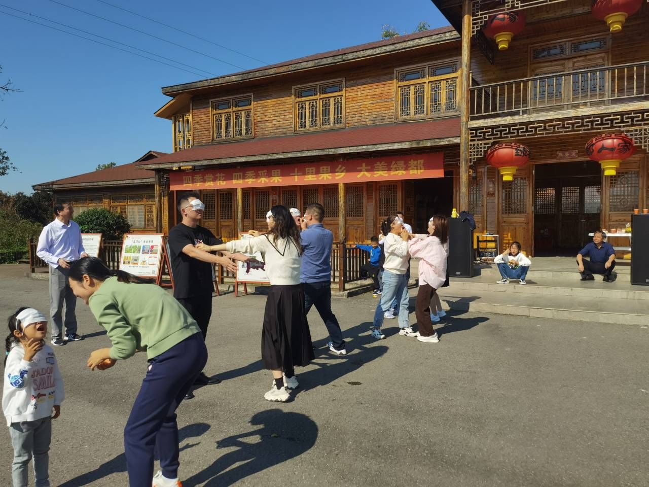 蒙眼喂橘子活动现场照片