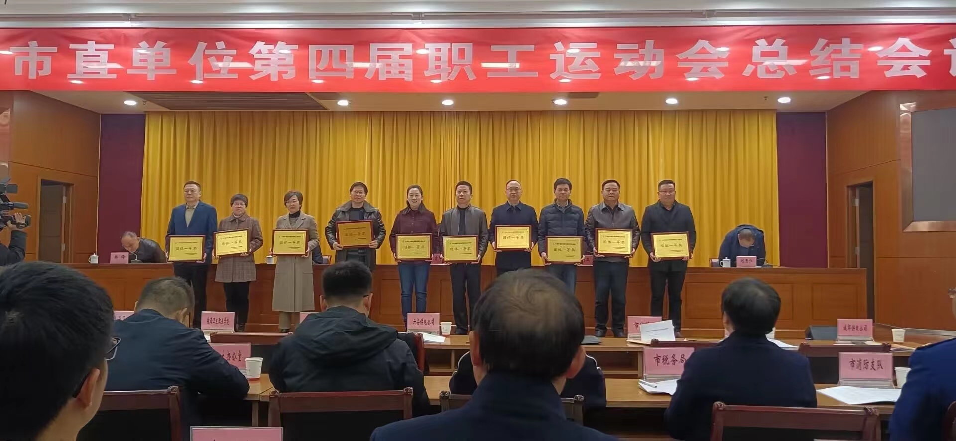 12月5日,万象城官网参加了六安市市直单位第四届职工运动会总结表彰大会。此次运动会,自2023年9月至11月在六安市体育中心隆重举行,共156家单位4058名职工参与角逐。万象城官网组织代表团52人次参加了9个项目的角逐,最终荣获总团体一等奖和优秀组织奖殊荣。