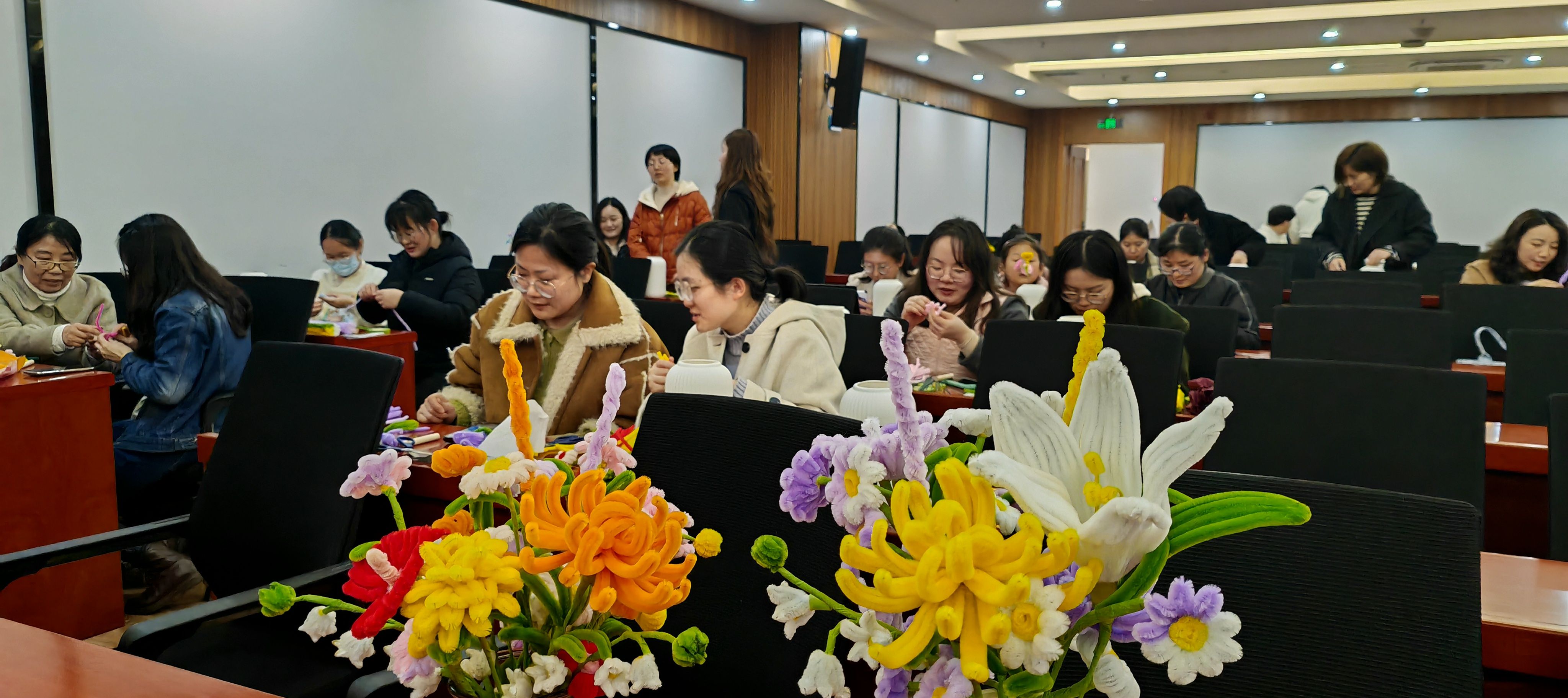 手工扭扭棒花束制作,巧手匠心,传递美好活动的最后一项是手工扭扭棒花束制作。在制作视屏的指导和学生志愿者的协助下,女职工们用五颜六色的扭扭棒制作出一束束精美的花束。每一朵花都凝聚了大家的巧思与匠心,象征着女性如花般绽放的美丽与力量。活动结束后,大家纷纷拍照留念,并将花束带回家中,为节日增添了温馨与浪漫的氛围。
