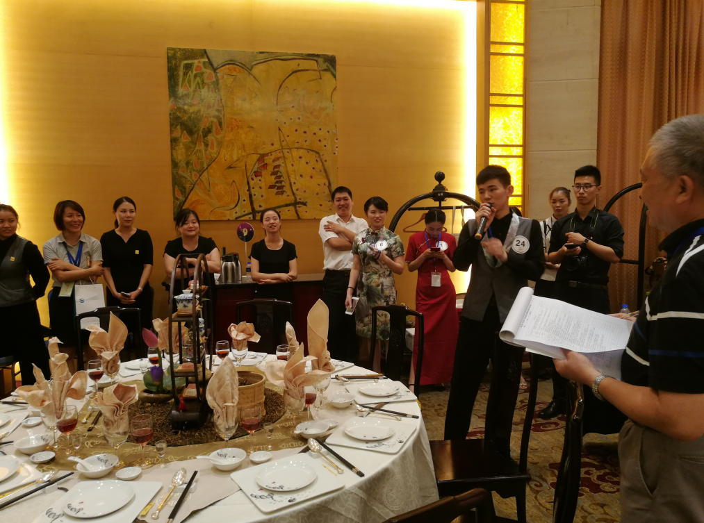 上海扬子江万丽大酒店宴会统筹总监Jane和西餐餐厅经理Michael向同学介绍西餐礼仪