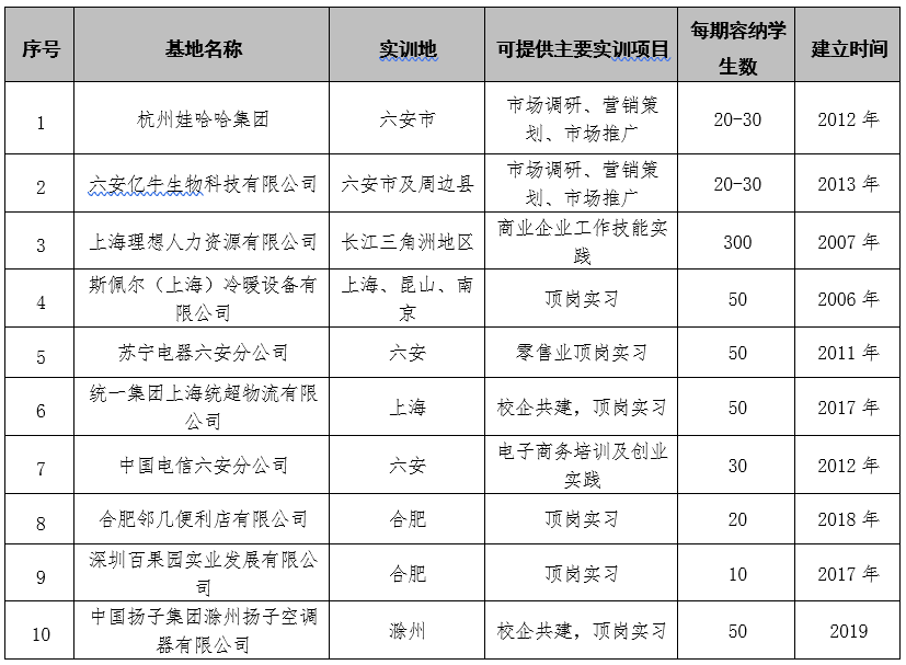市场营销专业校外实训基地一览表