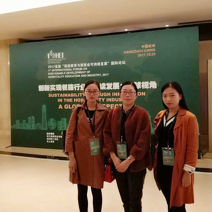 10月23日, 由浙江旅游职业学院、美国纽约理工学院、先之教育联合主办的首届“旅游教育与旅游业可持续发展”国际论坛在杭州召开。经贸管理学院旅游教研室主任司首婧、酒店管理专业教师丁希芬、郭艳秋三人应邀参会。