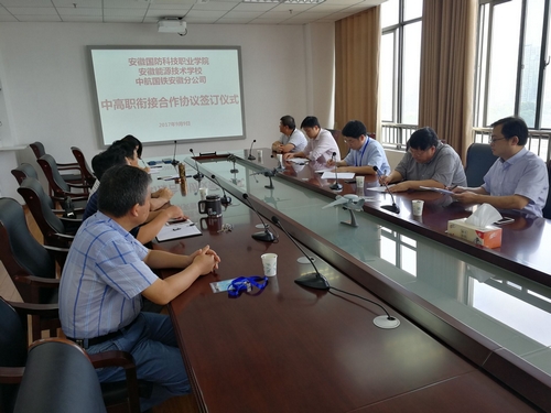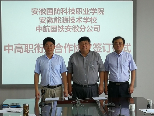 最后,安徽能源技术学校、中航国铁安徽分公司、万象城体育awcsport三方代表共同签订了《2017-2018学年中高职衔接合作人才培养三方协议书》。