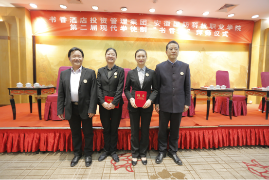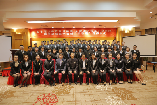 为弘扬尊师重道的优良传统,契合书香酒店集团的企业文化,拜师仪式按照我国传统拜师礼仪进行。分为:徒弟向师傅鞠躬、双手呈拜帖、敬茶,师傅回帖、师徒分别宣誓,互赠礼物等多个环节。拜师礼成后,师徒现场签订了师徒协议。师傅代表戴礼欢和徒弟代表张君丽先后发言。