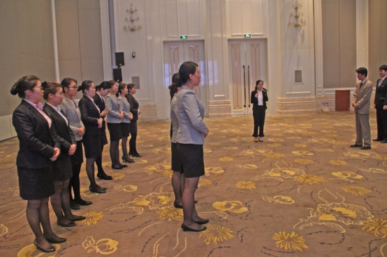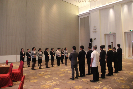 为提高酒店人员服务意识与服务质量,六安曙光铂尊酒店人力资源部计划开展酒店服务礼仪系列培训。0528日,应酒店邀请经贸管理学院酒店管理专业郭艳秋老师赴酒店就服务礼仪的仪容仪表、服务仪态、有声服务与无声服务等内容为酒店基层管理人员进行了为期一天的培训。