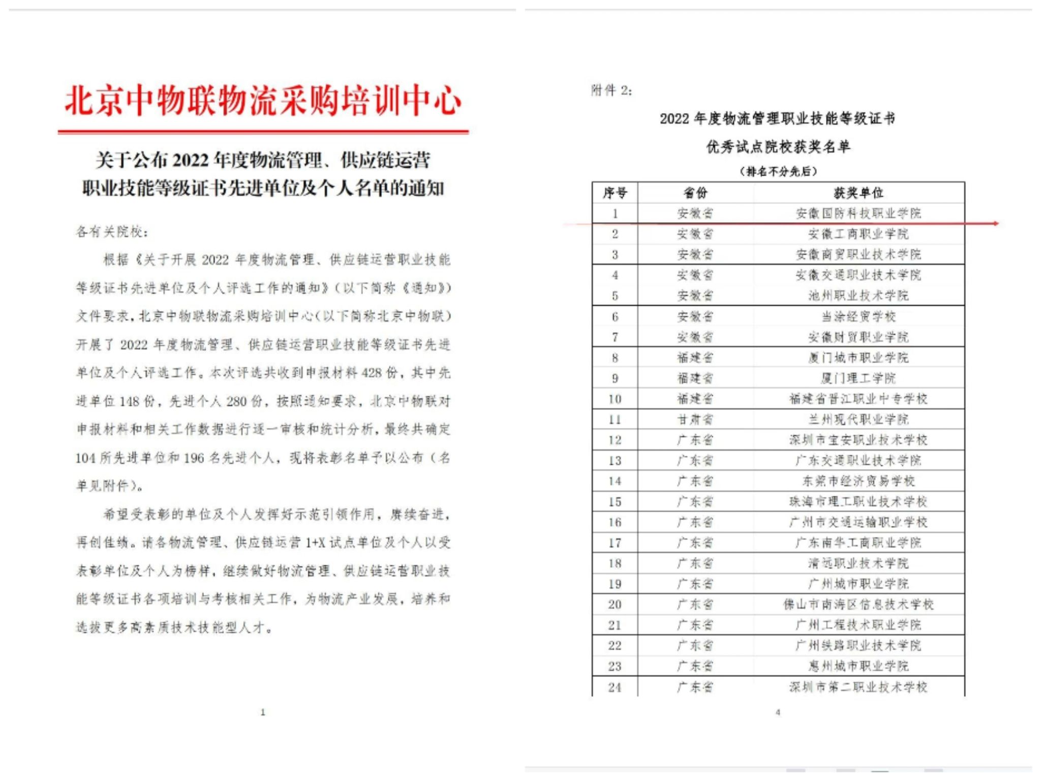 (本网讯 袁泓)6月25日,全国“1+X”物流管理职业技能等级证书评价组织北京中物联公布“2022 年度物流管理职业技能等级证书”先进单位及个人名单,万象城官网获评为“优秀试点院校”,教师袁泓、李礼分别荣获“优秀辅导教师”和“优秀考务管理员”称号。