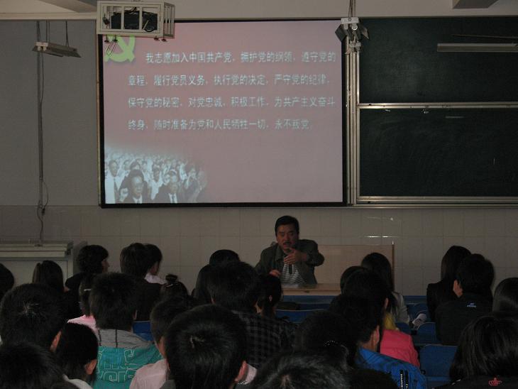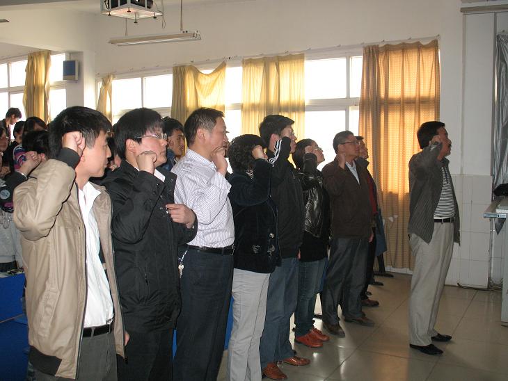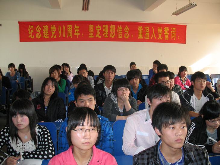 “我志愿加入中国共产党,拥护党的纲领,遵守党的章程……随时准备为党和人民牺牲一切,永不叛党。”为了迎接建党90周年,加强对新老党员的革命历史教育和爱国主义教育,5月25日下午,管理工程系全体师生党员,在2号教学楼205教室对着鲜红的党旗,再一次举起右拳,重温入党誓词。