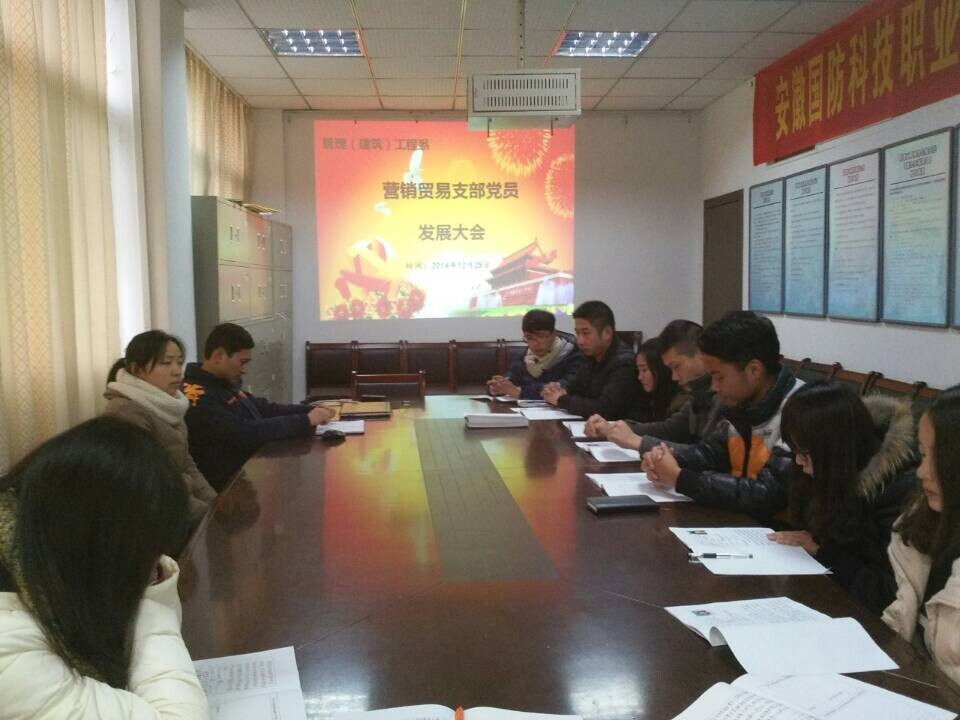 2014年12月23日下午,管理(建筑)工程系各学生支部发展预备党员大会及宣誓大会在系会议室举行。各支部党员老师、辅导员参加了本次大会。