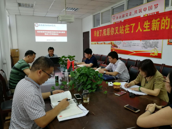 为进一步推动我院基层党组织标准化建设,2018年7月13日下午,经贸管理学院党总支在行政楼204会议室,召开了基层党组织标准化建设推进工作专题会议。会议由党总支书记杜先扬主持,全体党总支委员和工商管理、旅游管理两个支部书记参加了会议。