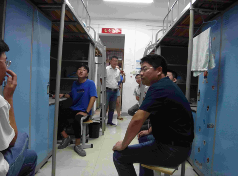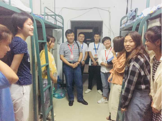 9月8日晚,迎新结束后,党员老师们又走进宿舍,实地了解学生住宿情况,关心慰问学生生活情况。党员老师们先后走访了2栋、3栋、5栋9栋学生宿舍,每到一间宿舍,党员老师们都仔细查看并询问学生的宿舍环境、卫生状况、安全保障、生活配套等情况,并与学生亲切交谈,了解他们的思想状况、对专业学习和校园服务的诉求,鼓励学生珍惜校园生活,刻苦努力学习,将来为社会发展多做贡献。对个别宿舍存在的安全隐患和卫生状况,党员老师们也叮嘱了相关辅导员和物业部门负责人,要牢固树立安全防范意识和服务意识,尽最大努力让全院学生住的安心、住的舒心。