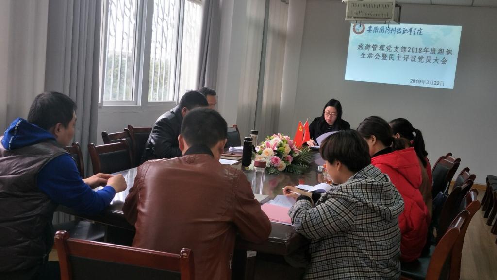 按照《关于召开2018年度基层党组织组织生活会和开展民主评议党员的通知》(校组人函〔2019〕5号)要求,3月22日,旅游管理党支部召开了2018年度组织生活会暨民主评议党员大会,全体党员参会。会议由支部书记司首婧主持。