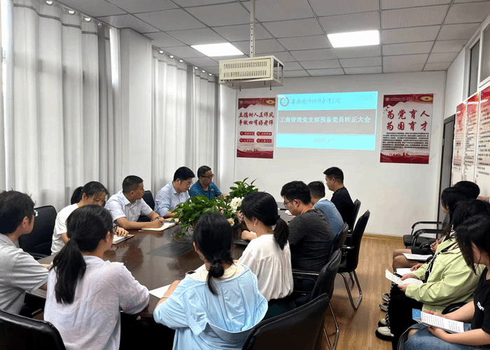 本网讯(经贸管理学院 陈玮)6月15日下午,经贸管理学院工商管理党支部于知行楼202会议室召开预备党员转正大会,讨论关于闻晓倩等5名预备党员的转正申请。工商管理党支部书记杨力、党支部副书记刘猛及支部全体党员、预备党员参加会议。会议由杨力主持。