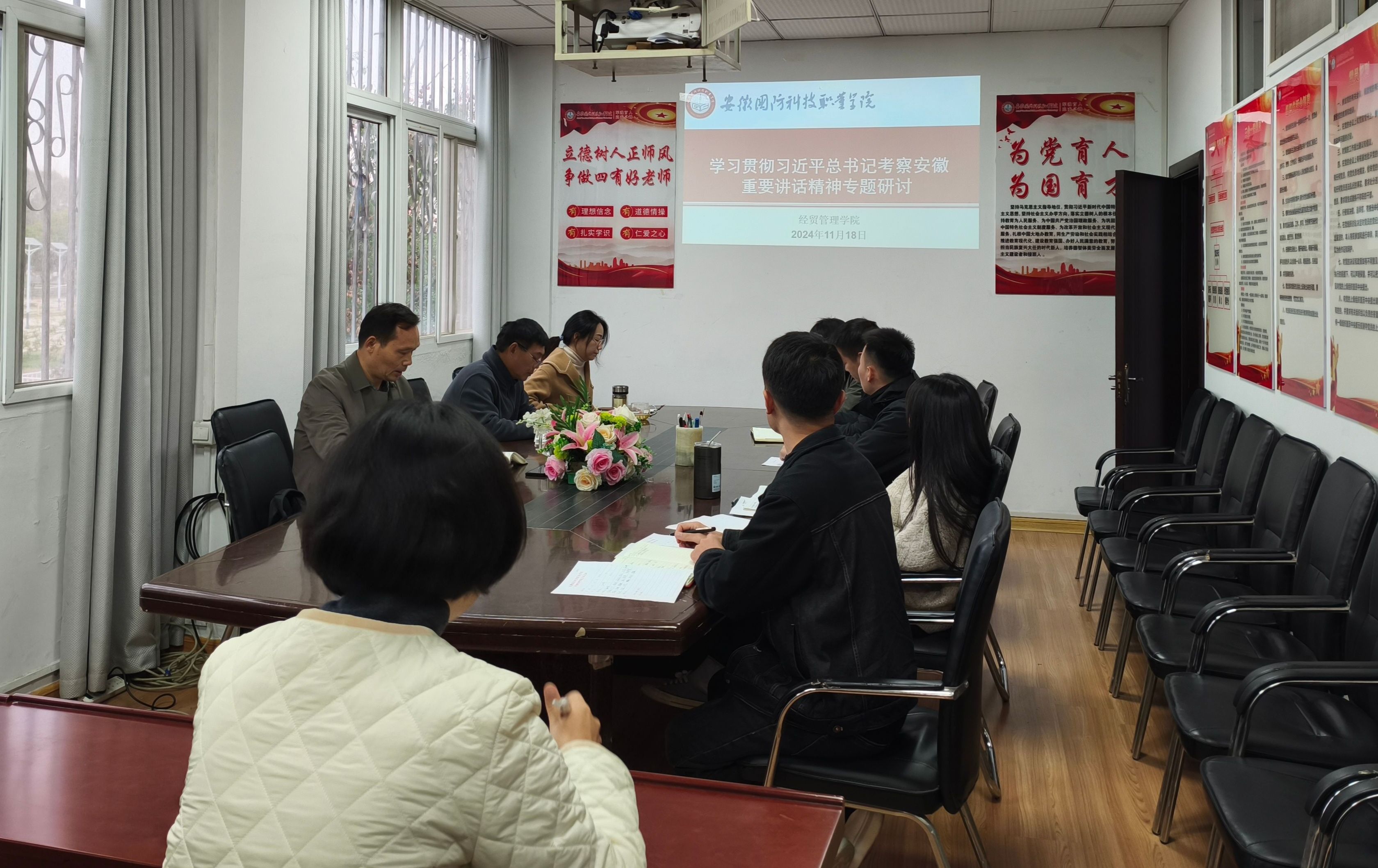 根据学校党委工作部署及学院工作安排,11月18日下午,学院召开学习贯彻习近平总书记考察安徽重要讲话精神专题研讨会,进一步推进学生工作,会议由院党总支书记刘峰主持,全体专职辅导员参加。