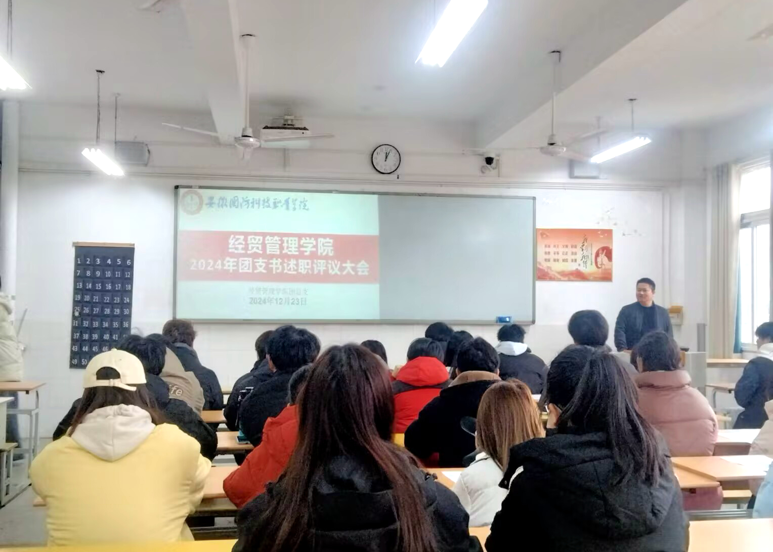 本网讯(学生通讯员 张成)为进一步落实从严治团的工作要求,加强基层团支部书记履职尽责能力。12月23日中午,经贸管理学院团总支组织各班级团支书和团员代表在2教108教室召开了2024年团支部书记述职评议会议。此次会议由院团总支书记陈玮主持。