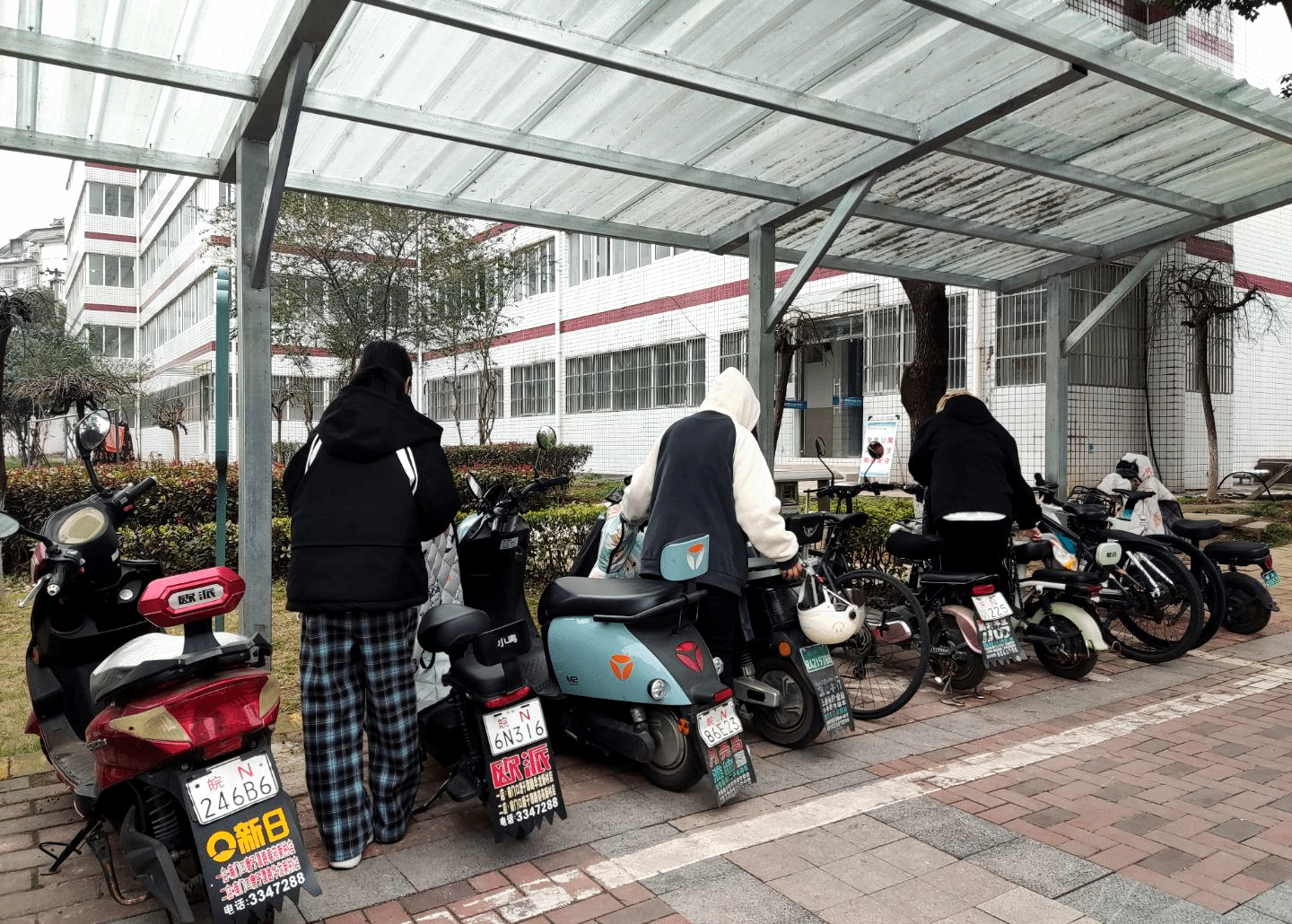 活动当天,志愿者们仔细巡查每一个非机动车位,耐心地将一辆辆随意停放的自行车和电动车归位,确保非机动车位整齐有序。同时,志愿者们还向过往的师生行人宣传文明停车的重要性,倡导大家共同维护公共区域交通秩序。