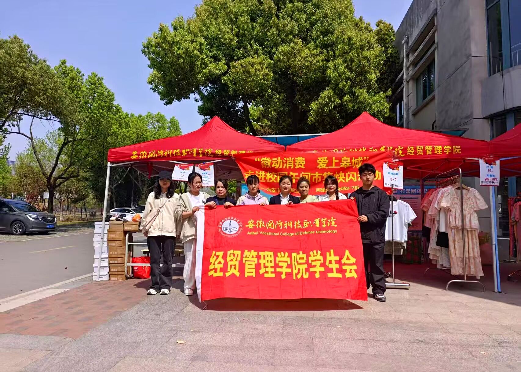 为深入贯彻落实中共中央办公厅、国务院办公厅印发的《提振消费专项行动方案》精神,进一步激发校园市场活力,同时为在校师生提供便捷、优质、实惠的消费体验,4月3日中午,经贸管理学院联合六安市商务局在学校食堂门前广场举办“午间市集快闪”促消费活动。活动以“快闪”为创意载体,通过短时高效的促销模式与沉浸式消费体验,吸引众多师生热情参与。