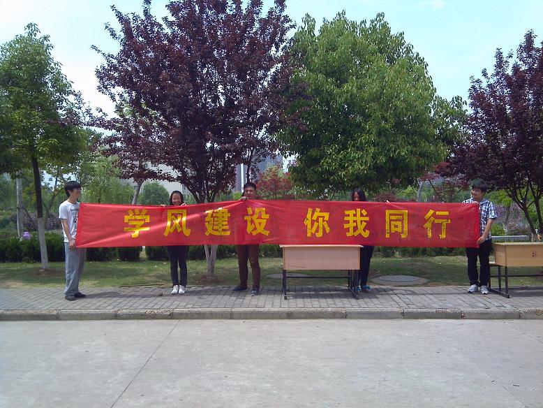 为响应学院“学风教风建设年”活动的号召,院会计协会于2013年5月3日上午11点在学院食堂门口开展“学风建设,你我同行”签名活动。