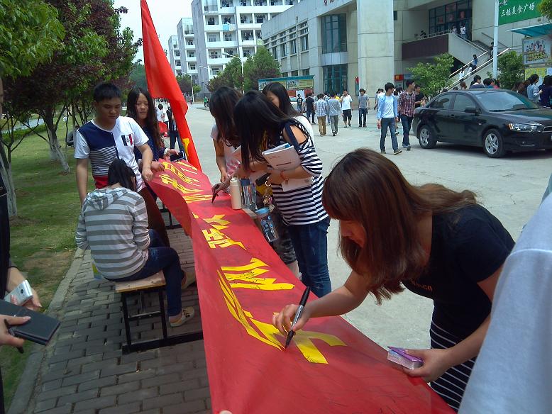本次签名活动是为了积极引导同学们珍惜大学时光,认真读书,勤奋学习,努力钻研,掌握过硬的专业知识,积极投身到学院的学风建设活动中来。在签名现场,烈日当头,同学们也积极响应,纷纷在横幅上签下自己的名字,支持学院学风建设年的开展,小小的名字,大大的决心,大家通过签名承诺自己在今后将会更加积极、自觉的参与到学风建设中去,从我做起,争做优秀学生。