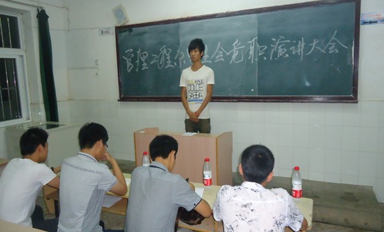 6月15日晚,管理工程系第八届学生会换届竞职大会于一教学楼106教室顺利召开。丁辉老师及10级学生会成员担任此次竞职大会评委。会上,同学们做好了充分准备,个个精神饱满、谈吐大方,表达了自己对学生会今后发展的一番见解与计划,激情与热情贯穿了整个演讲,台下的掌声频频响起,整个现场保持着热烈的气氛。此次大会既给同学们提供了展示自我的舞台,又增强了同学们的集体荣誉感,提高了学生的团队凝聚力。丁辉老师在最后的总结发言中对系学生会的未来提出了明确要求,用生动形象的事例来激励和鼓舞各位同学,竞选学生纷纷表示要认真学习,不断努力,争取肩负起作为当代青年应有的使命感与责任感。